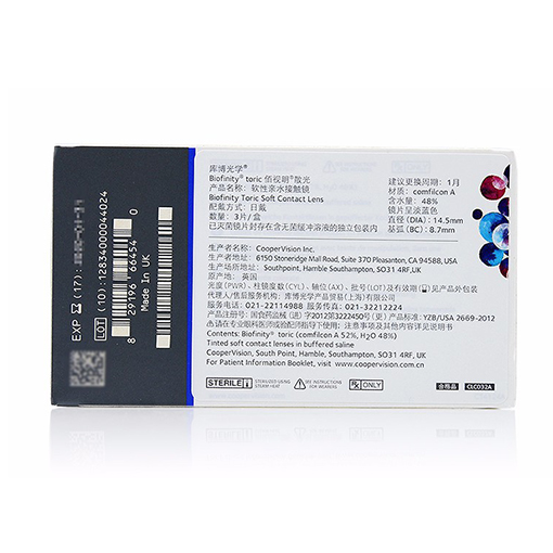 【散光定制】库博佰视明3片月抛硅水凝胶隐形